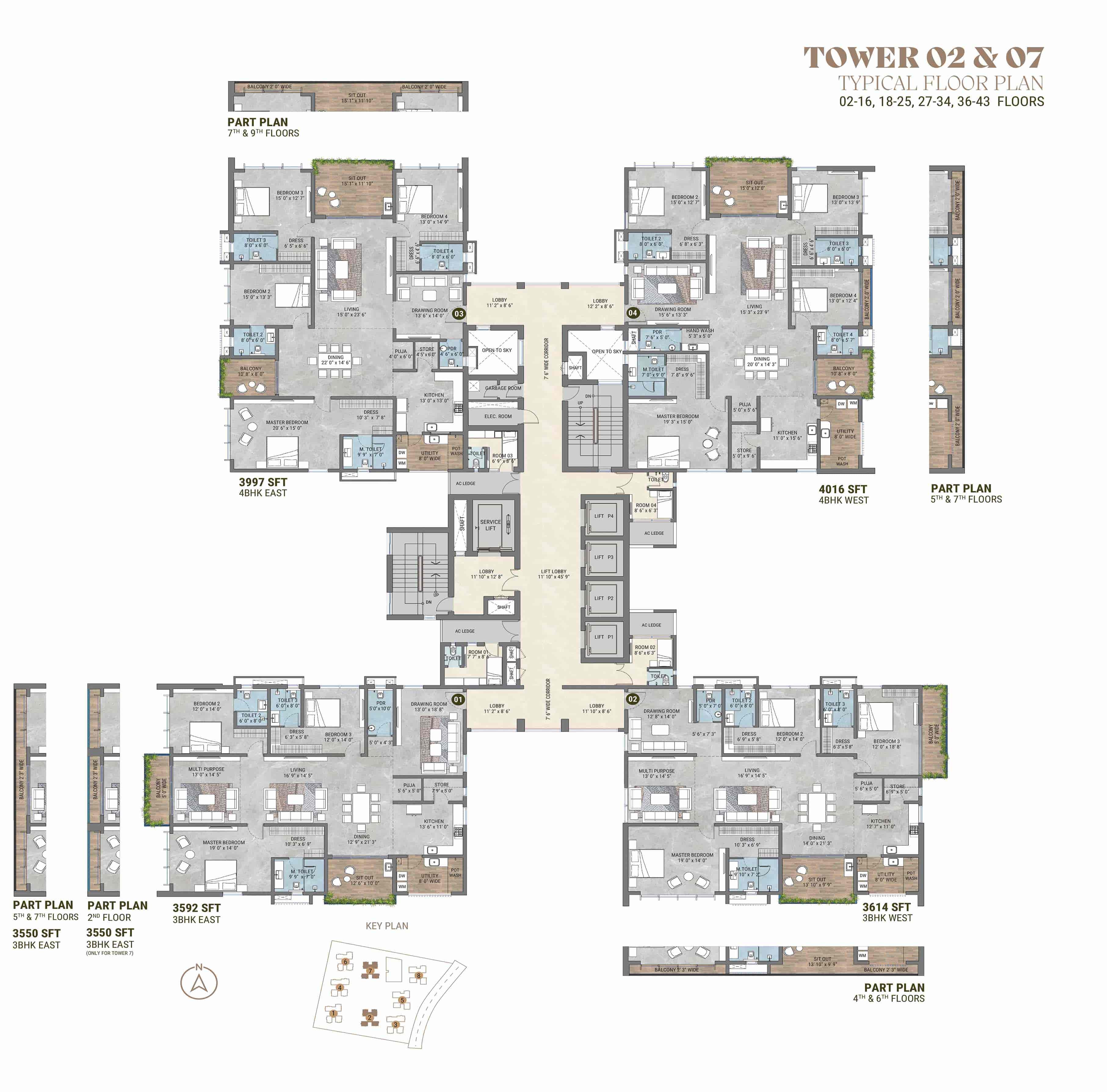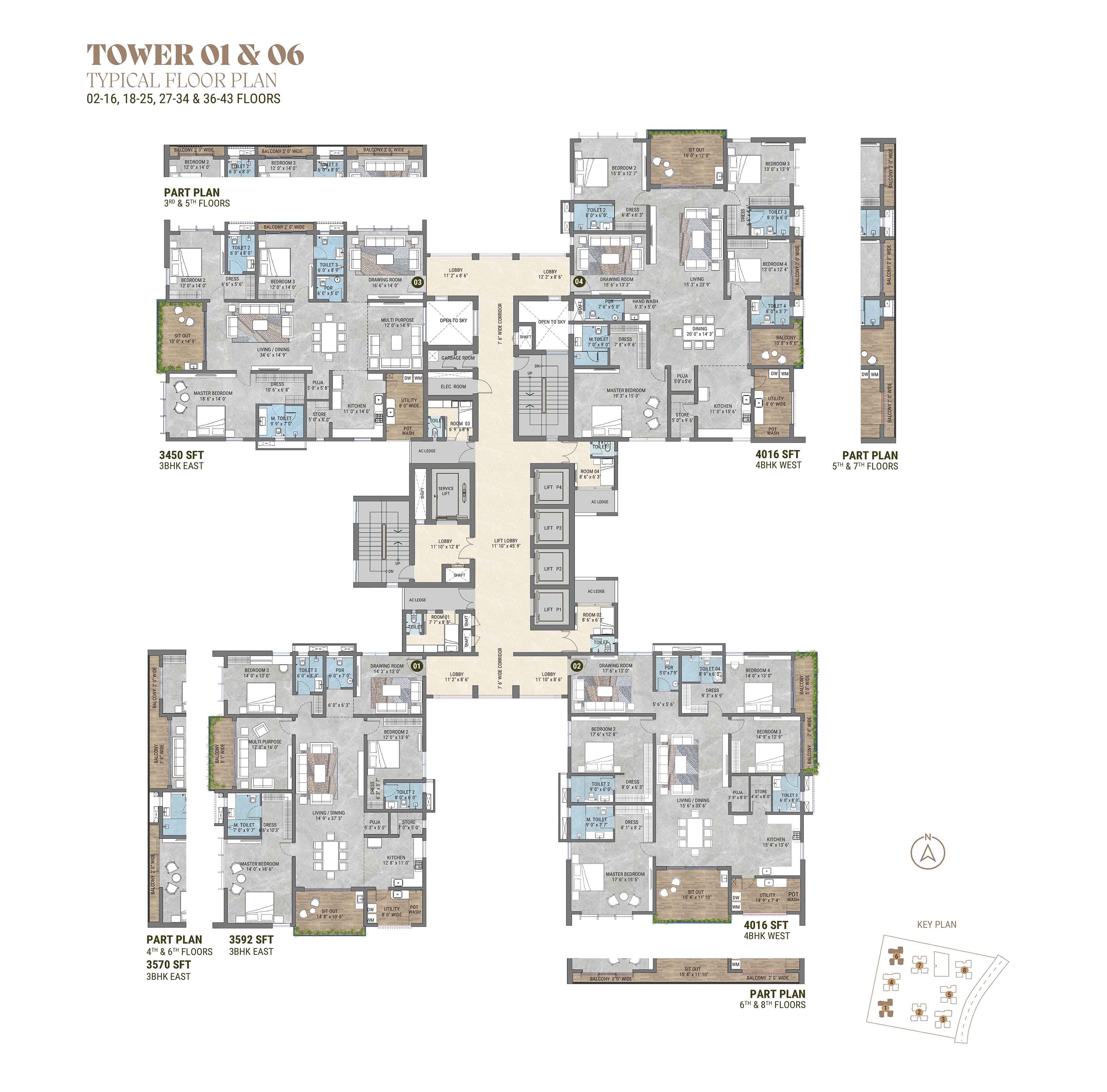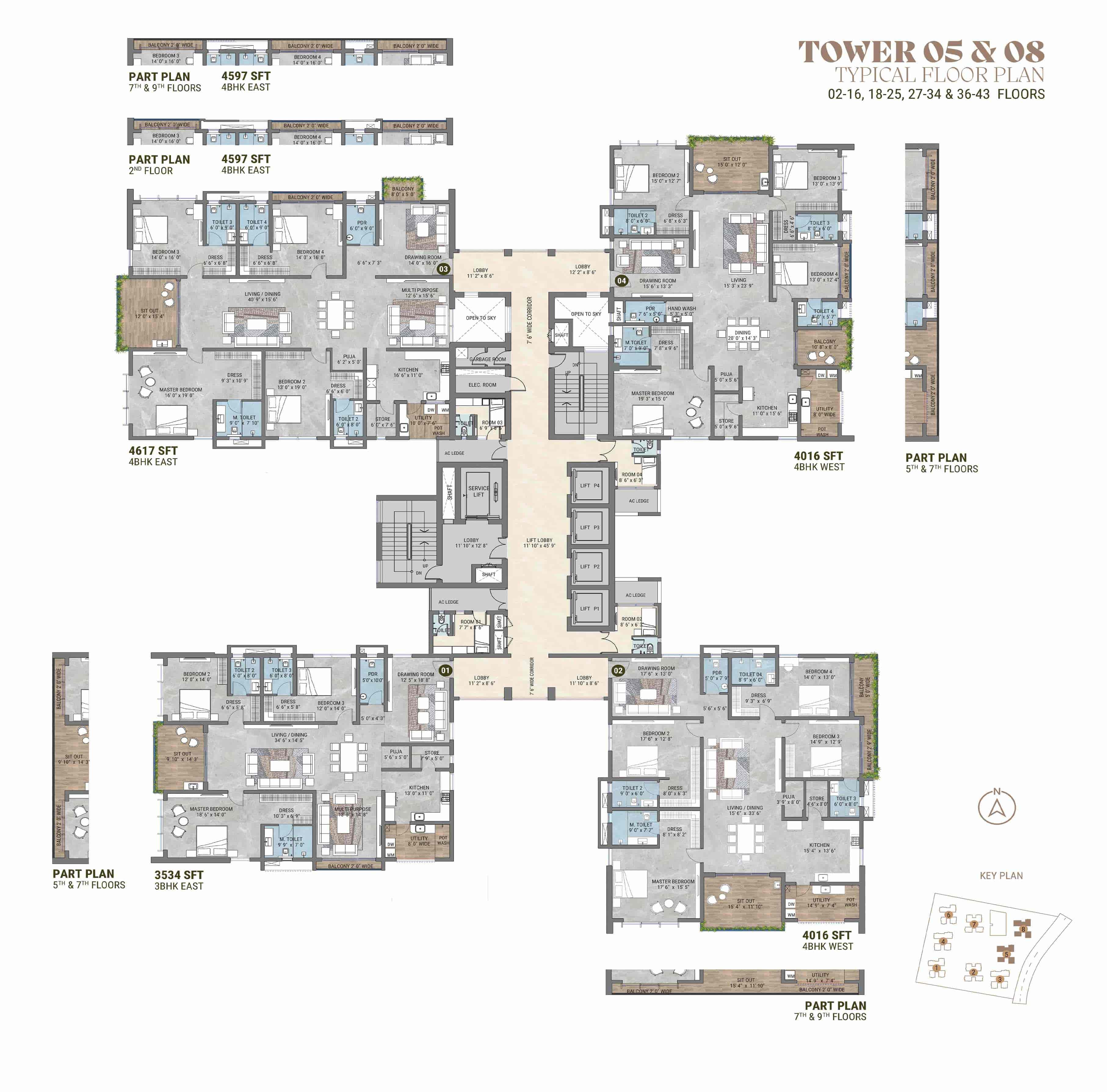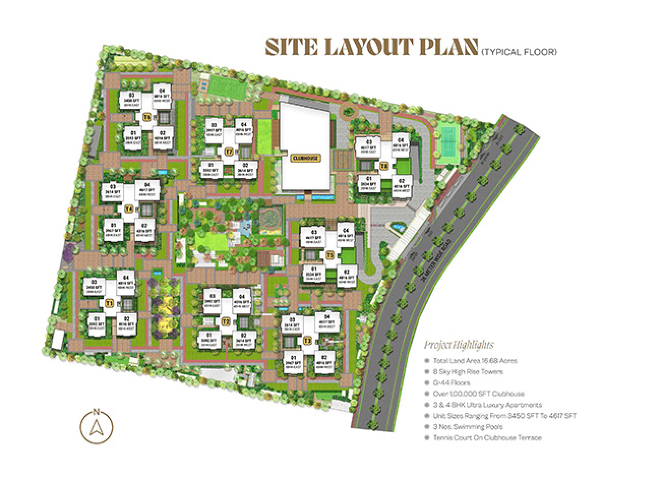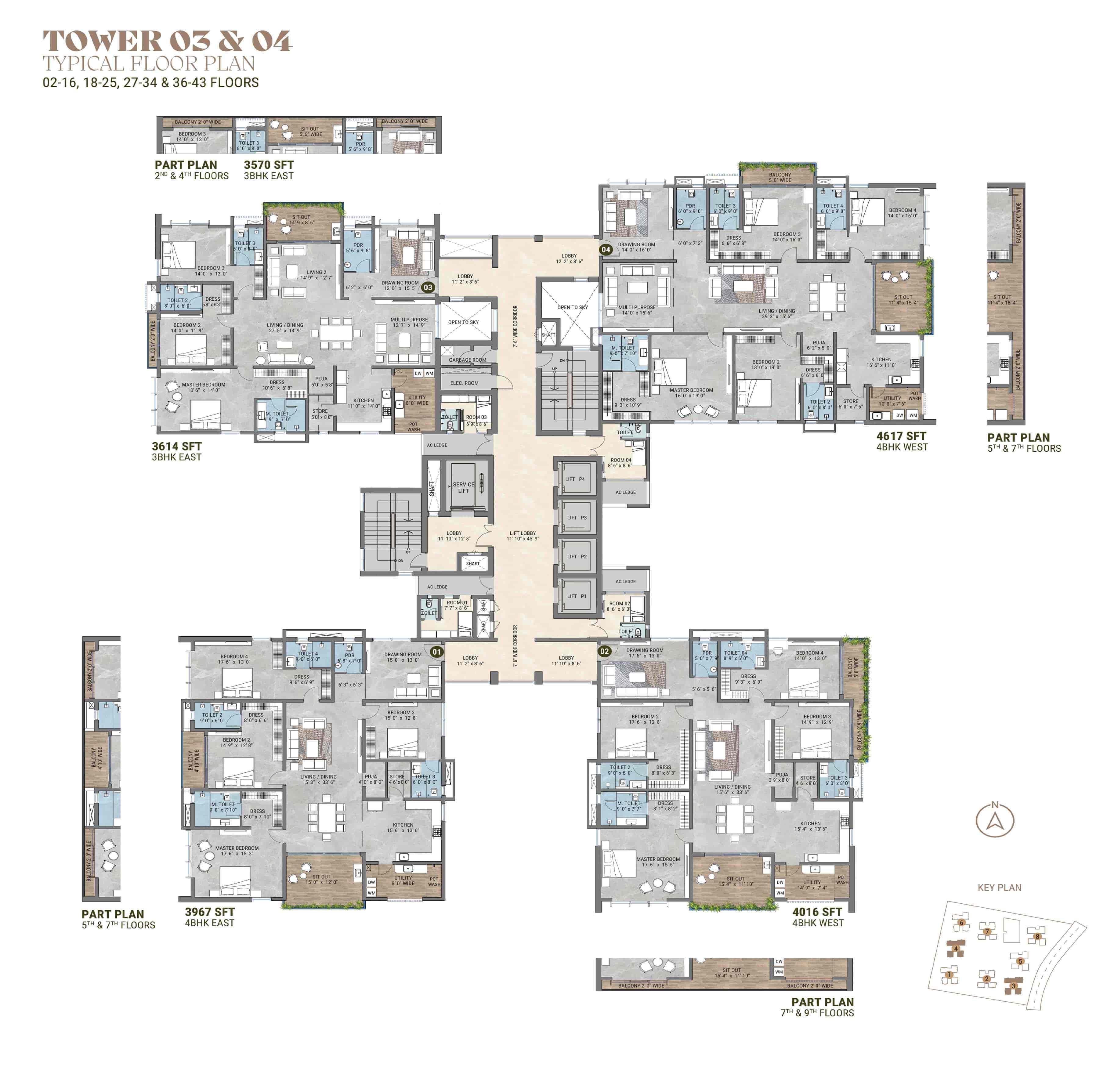 3 & 4 BHK sized ranging from 3450 sft to 4617 sft